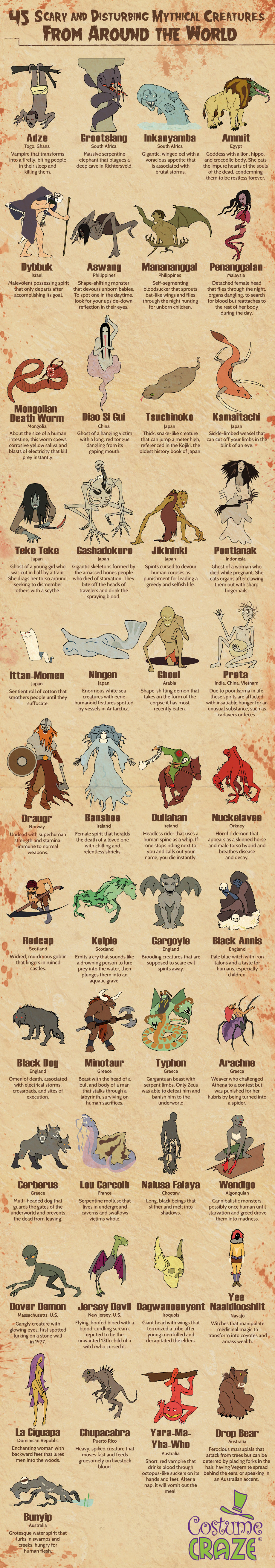 We will be zooming through some of these cultures just to see more about mythology. If you have a culture you want to see, but it is not here, let me know! African Creation Aztec Deluge Babylonian Deluge Chinese Creation Indonesia The We We Gombel Japanese Creation Japanese Gods and Goddesses Japanese Urban Legends Japanese Ghosts, Creatures, and Demons Native American Deluge (Algonquin) Deluge (Cree) Slavic Voodoo