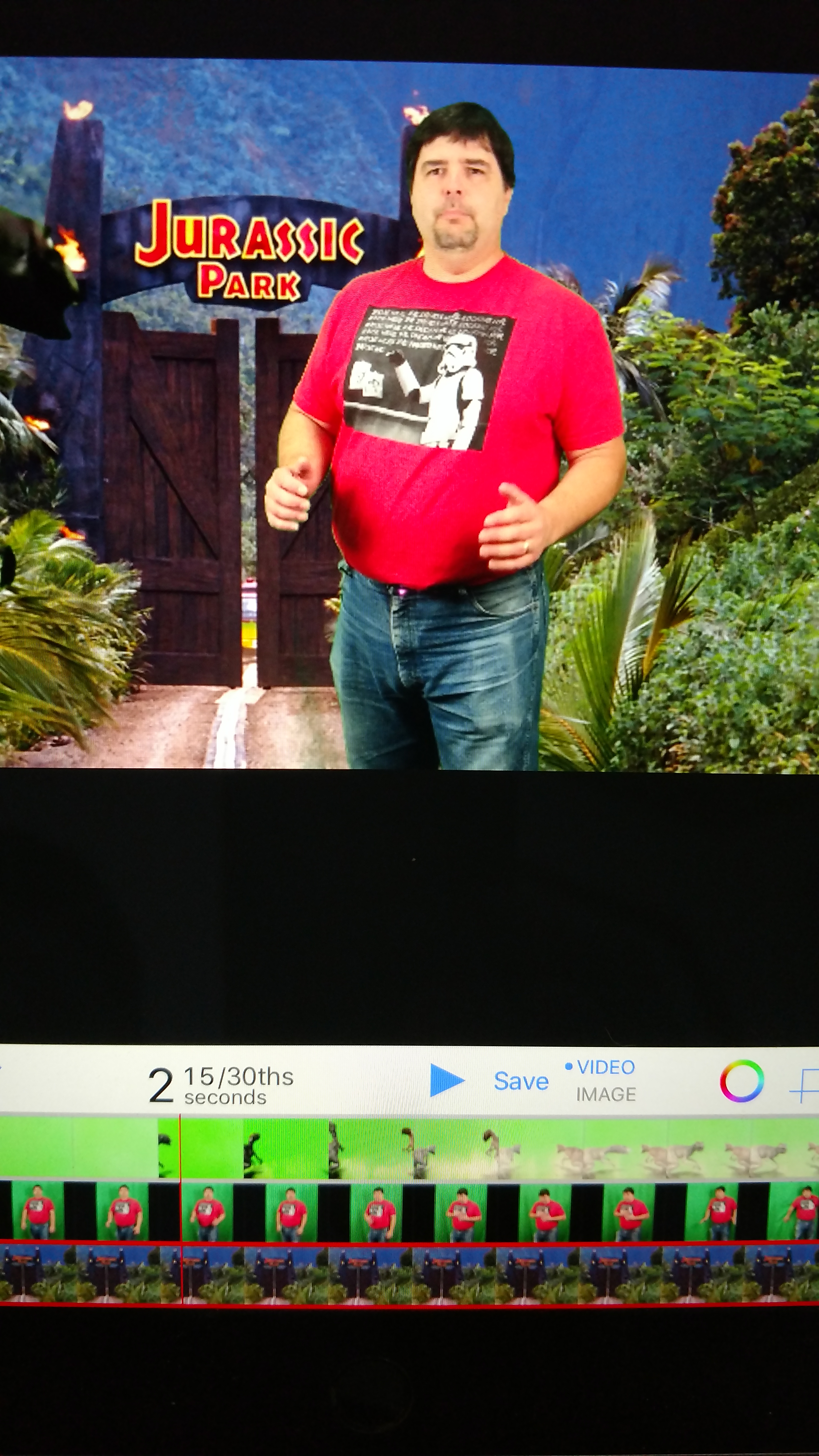 The point is that you are going to show me that you KNOW this scene and what makes this scene important. Stage 4Start planning it out. Here is the "storyboard" that I used to figure out my little video (I know, you thought it was made by a professional). You will need some sort of a plan to make it actually work. What props will be needed? What costuming will be needed? What sort of special effects are you going to use? Stage 5Start filming. Here is how this works. We will be in the It allows you to layer video and images over each other. Here is a screen shot: You can see this is a scene from the Jurassic Park version. At the bottom of the image you can see three layers of video. The bottom layer is my background. It must be on the bottom because everything else needs to lie on top of it. The middle layer is of me standing in front of a green screen. When I lay that on top of the background, everything that is green becomes see through (which is why you should not where green shirts). The top layer are the dinosaurs which are also over a green screen. They must be on top, otherwise I would always be in front of them.